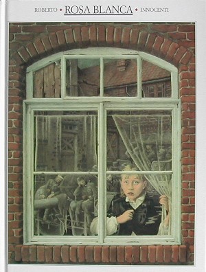 Rosa Blanca está compuesta con ilustraciones como cuadros, elaboradas con minucioso realismo en los detalles, pero empleando picados y contrapicados violentísimos y perspectivas caballeras frontales, muy poco comunes: al no mostrar las cosas con las proporciones reales, indirectamente se indica que la historia que se cuenta sólo puede abordarse rompiendo las perspectivas ordinarias, es tan demencial que algo así haya sucedido… Innocenti, que da gran valor a la documentación e intenta huir del anacronismo, en éste y en sus otros álbumes, se caracteriza también porque nunca deja en nebulosa a los personajes secundarios sino que procura individualizarlos a todos. Su final triste no es el común en un libro para chicos, pero su mensaje a favor de la piedad y del valor que pasan por encima del miedo, lo convierten en uno de esos libros que dan pie a conversaciones de fondo.